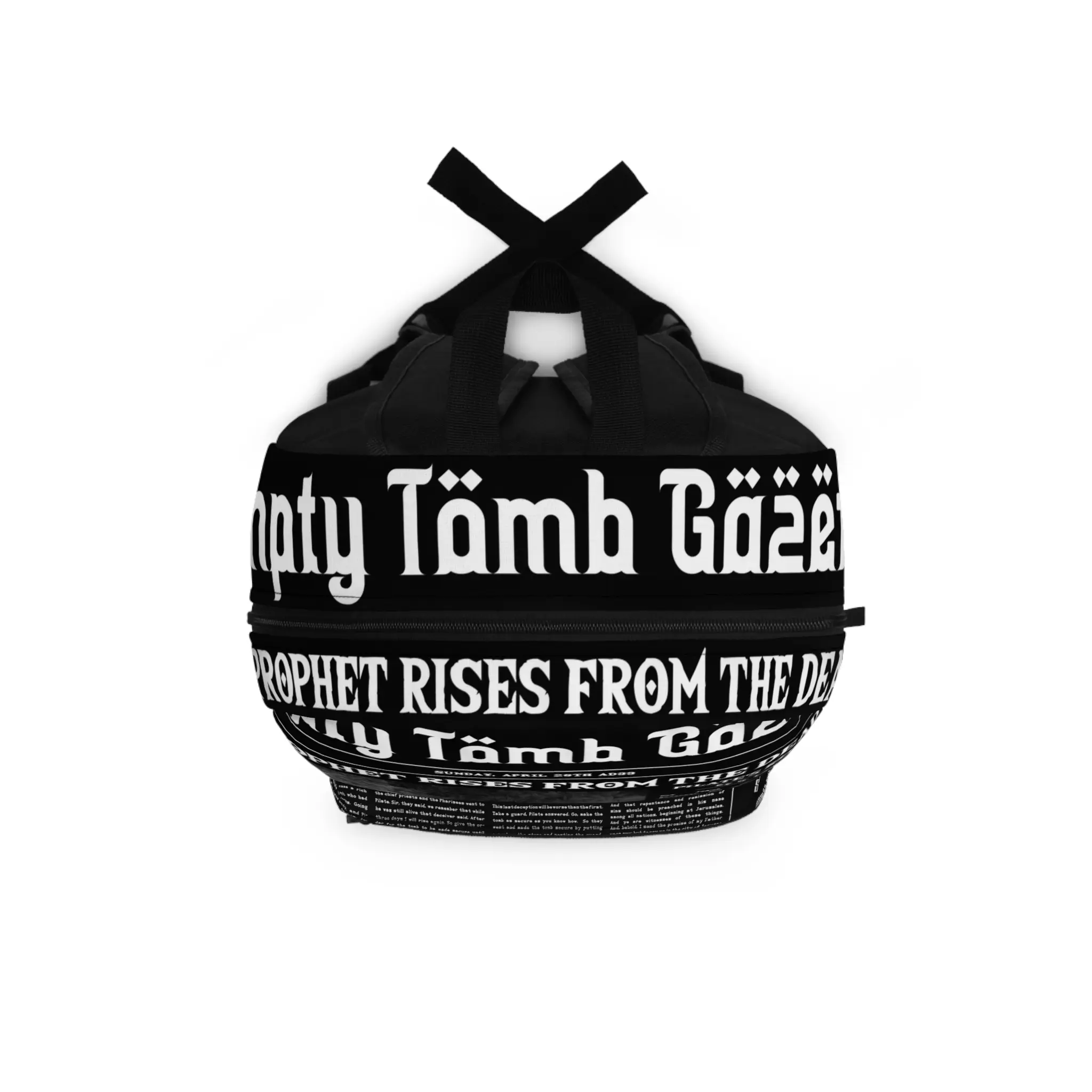 Carry the greatest headline of all time with this black backpack featuring the “Empty Tomb Gazette” vintage newspaper-style design. Boldly declaring “The Tomb Is Empty – He Is Risen!” it combines meaningful faith expression with practical, everyday functionality.