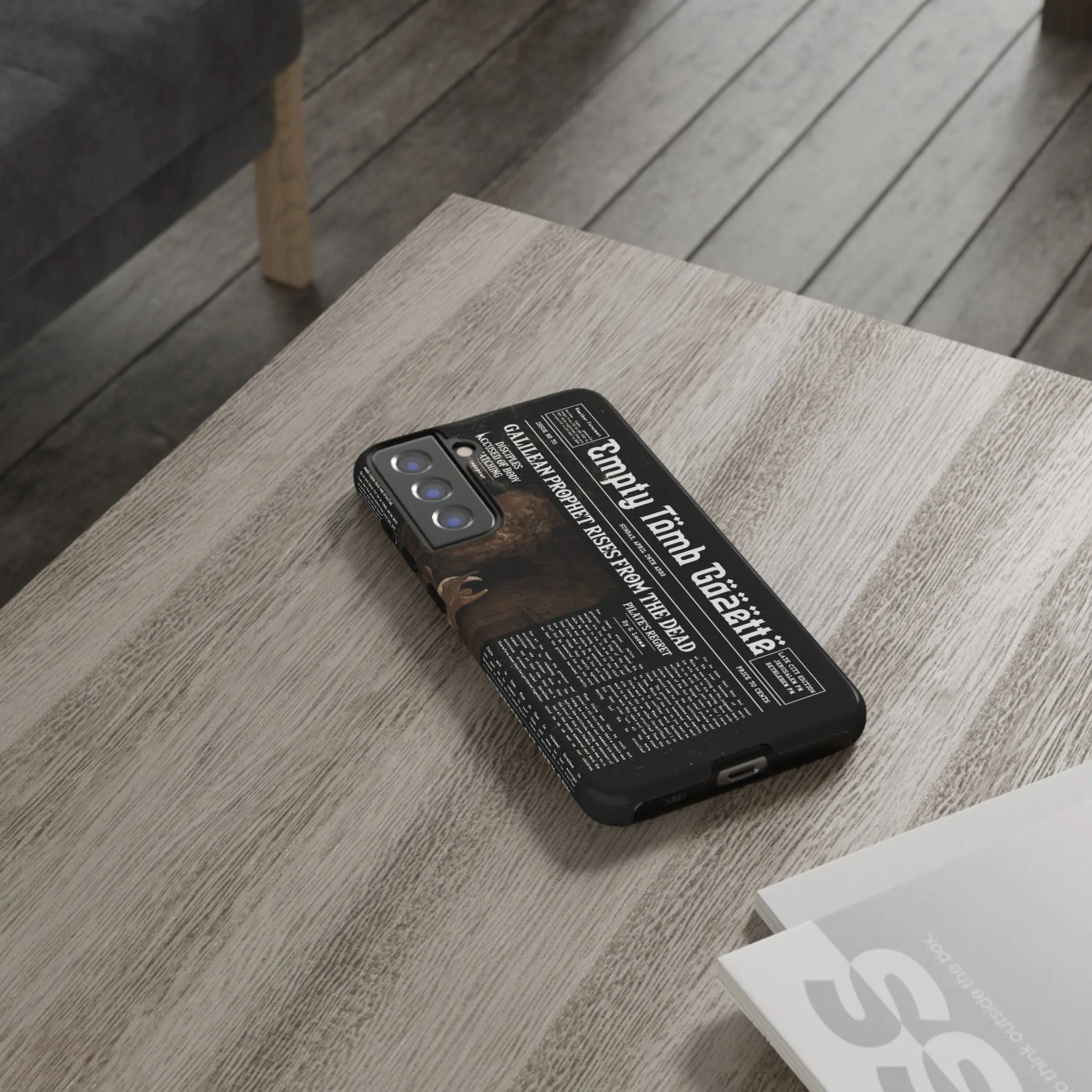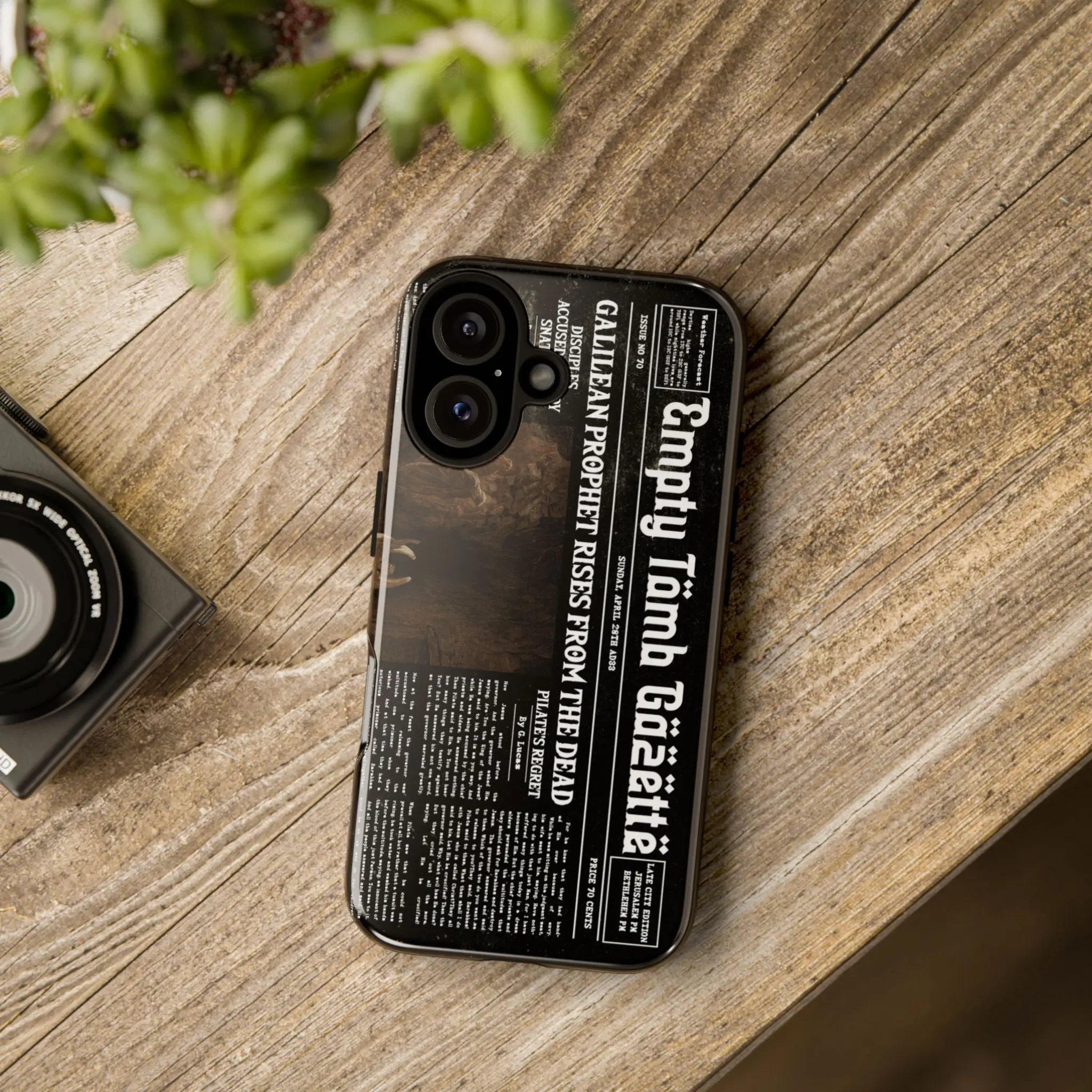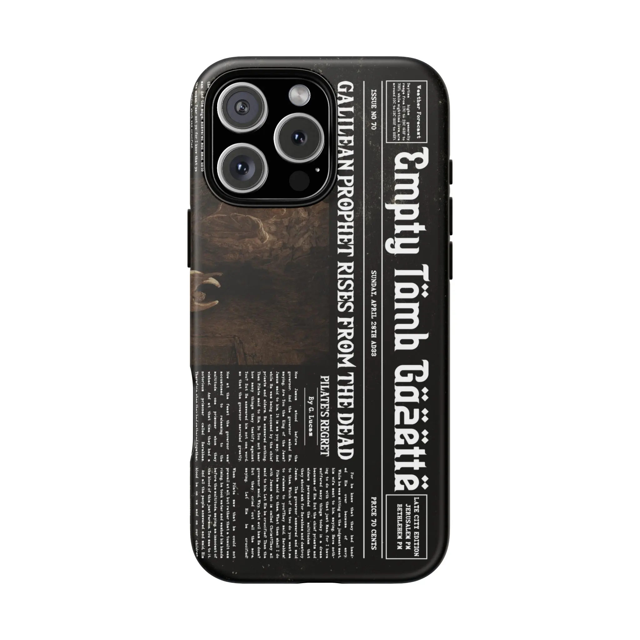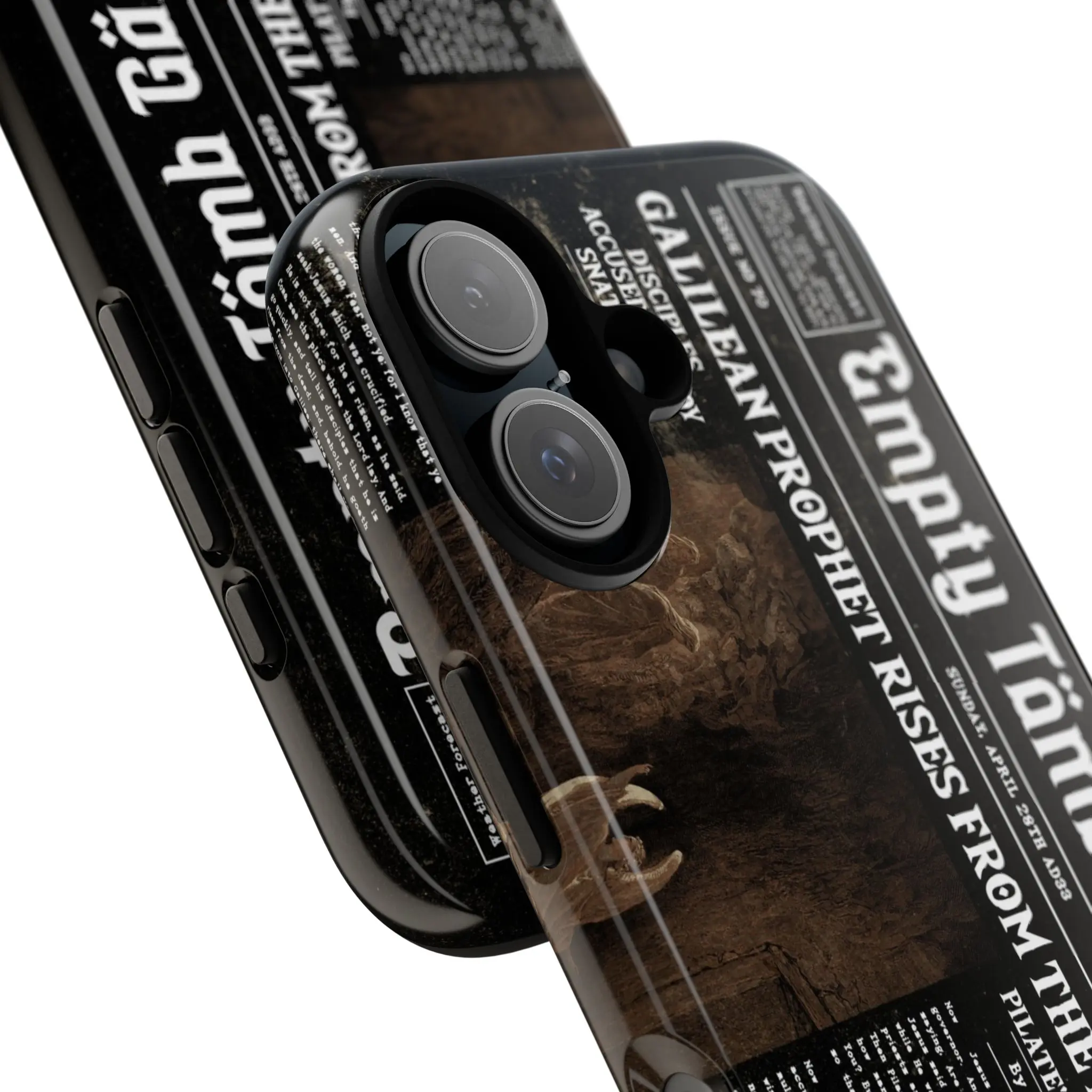 Keep the resurrection message close with this sleek black phone case featuring a vintage newspaper-style headline: “The Tomb Is Empty – He Is Risen!” Combining timeless truth with modern protection, this case is lightweight, durable, and designed to make a bold statement of faith every day.