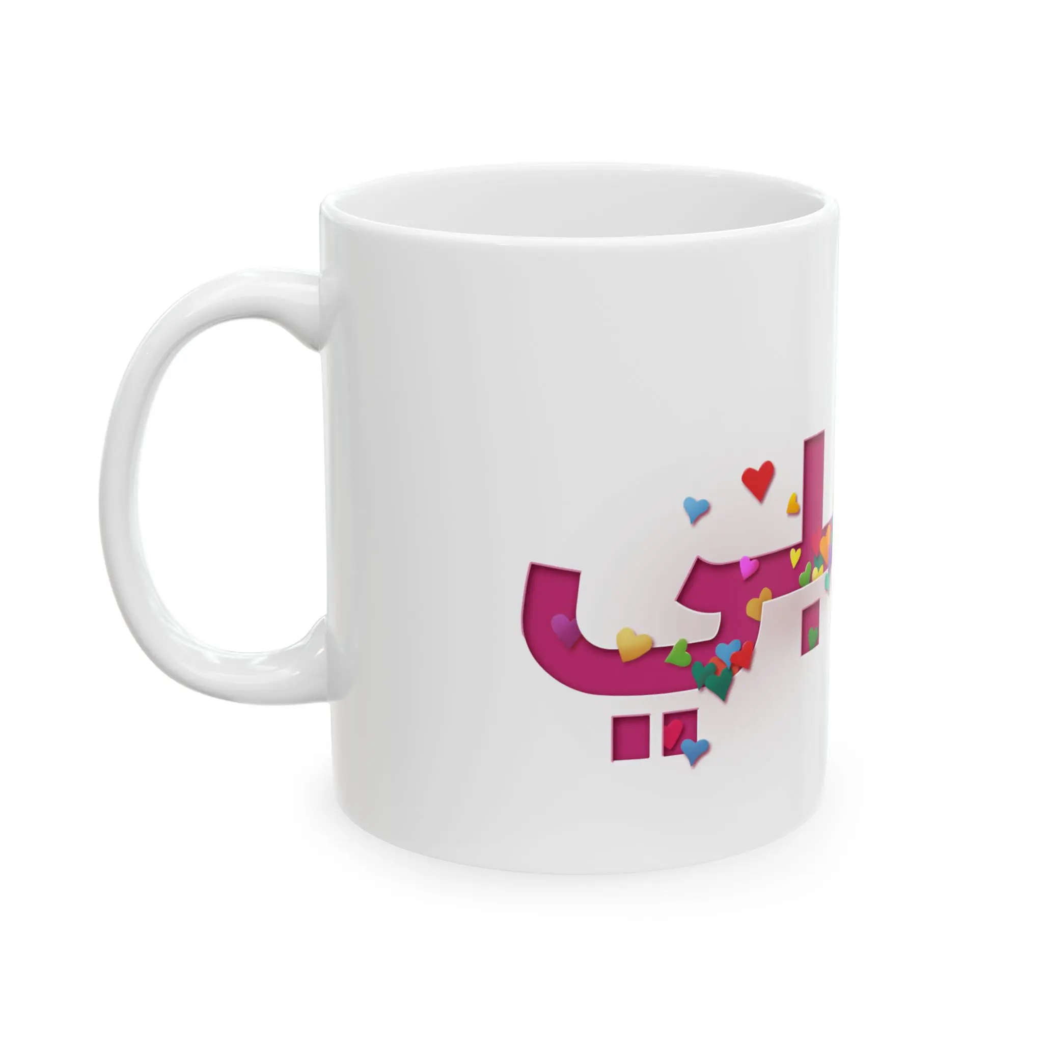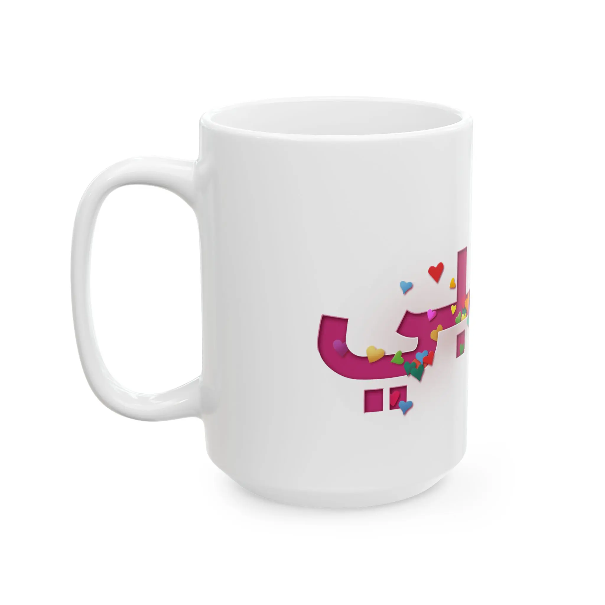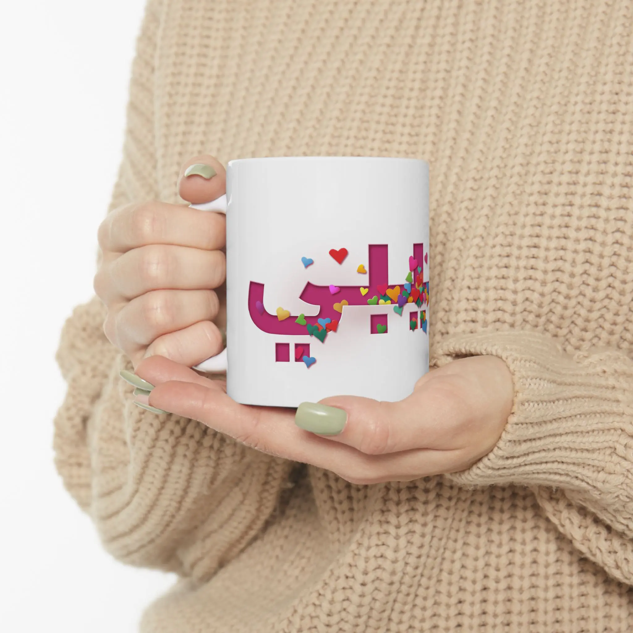 Show your love with this vibrant ceramic mug featuring a colorful hearts design and the word “Habibi.” In Arabic, “Habibi” can mean “my love,” “my friend,” or “my beloved,” making it a versatile expression of affection. This beautifully crafted mug is perfect for gifting or keeping for yourself, bringing warmth and a personal touch to every sip. Whether you’re sharing it with someone special or enjoying it for yourself, this mug is a heartfelt reminder of the bonds that matter most.