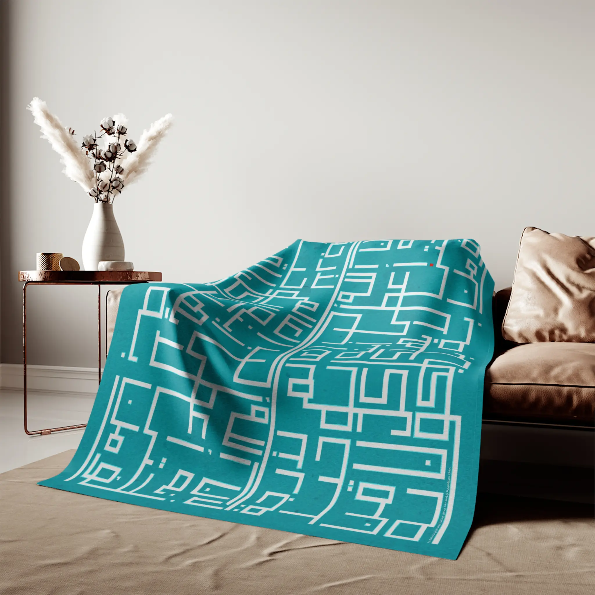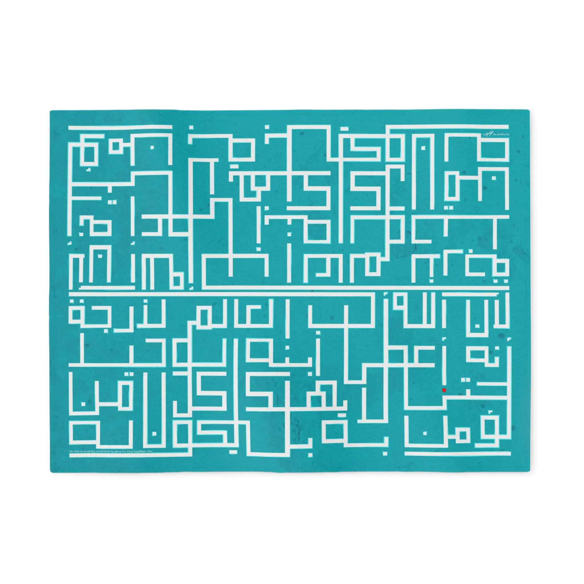 Wrap yourself in meaning and warmth with this one-of-a-kind throw blanket featuring the mirrored Arabic calligraphy of “For God so loved the world…” from John 3:16. Designed in a striking maze pattern, it symbolizes the mystery and depth of God’s love. A small red dot in the bottom corner represents how each of us is uniquely made and fully known by Jesus. Perfect for cozy nights at home or as a thoughtful gift, this blanket blends faith, art, and comfort into a powerful daily reminder.