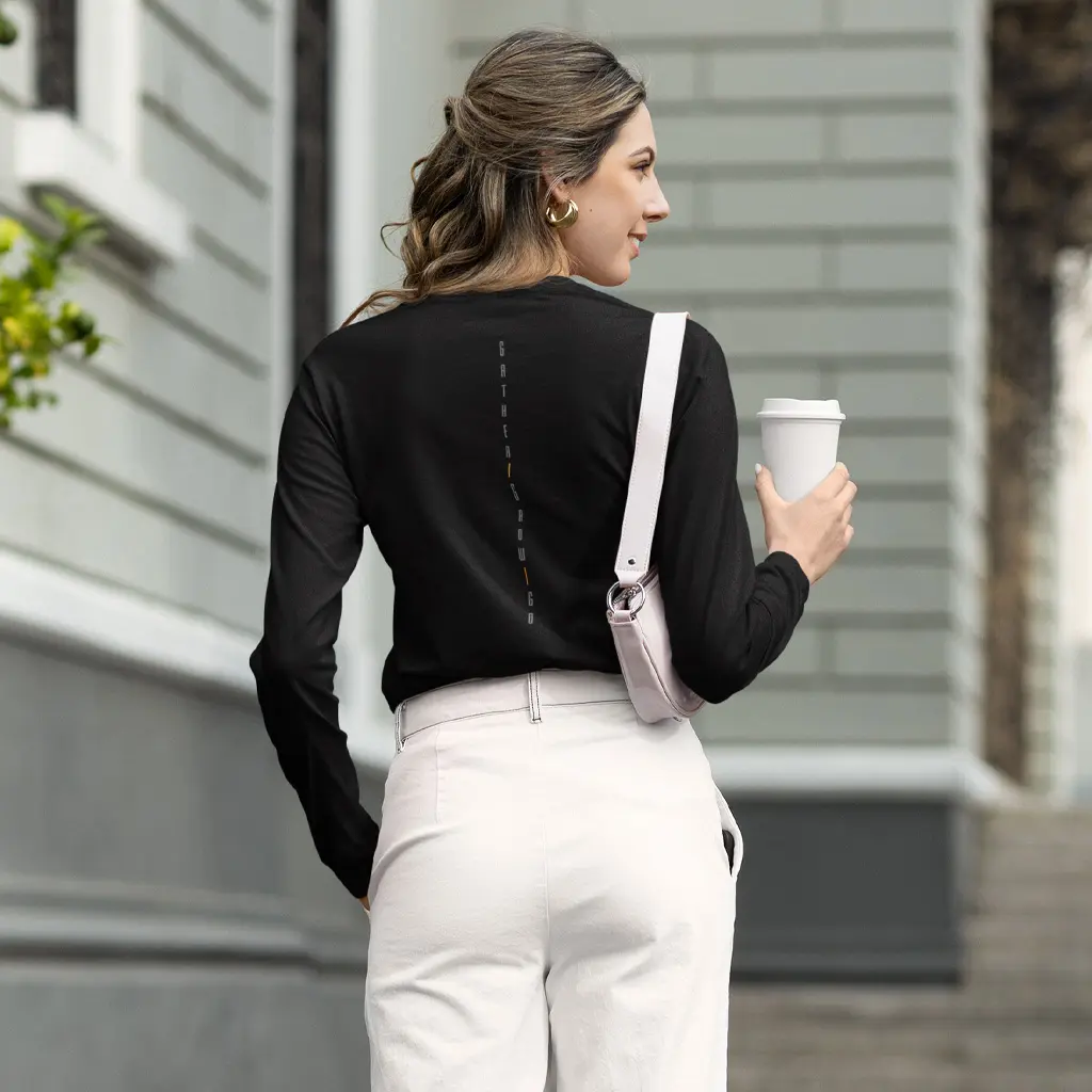 A bit more formal than a standard-issue t-shirt, the ultra cotton long sleeve tee is a clear comfort winner. The sleeves also act as a nice frame. There are no side seams. The shoulders are taped for improved durability. This makes for a good fitting around the shoulders and neck. The cotton used for these shirts is environmentally friendly.