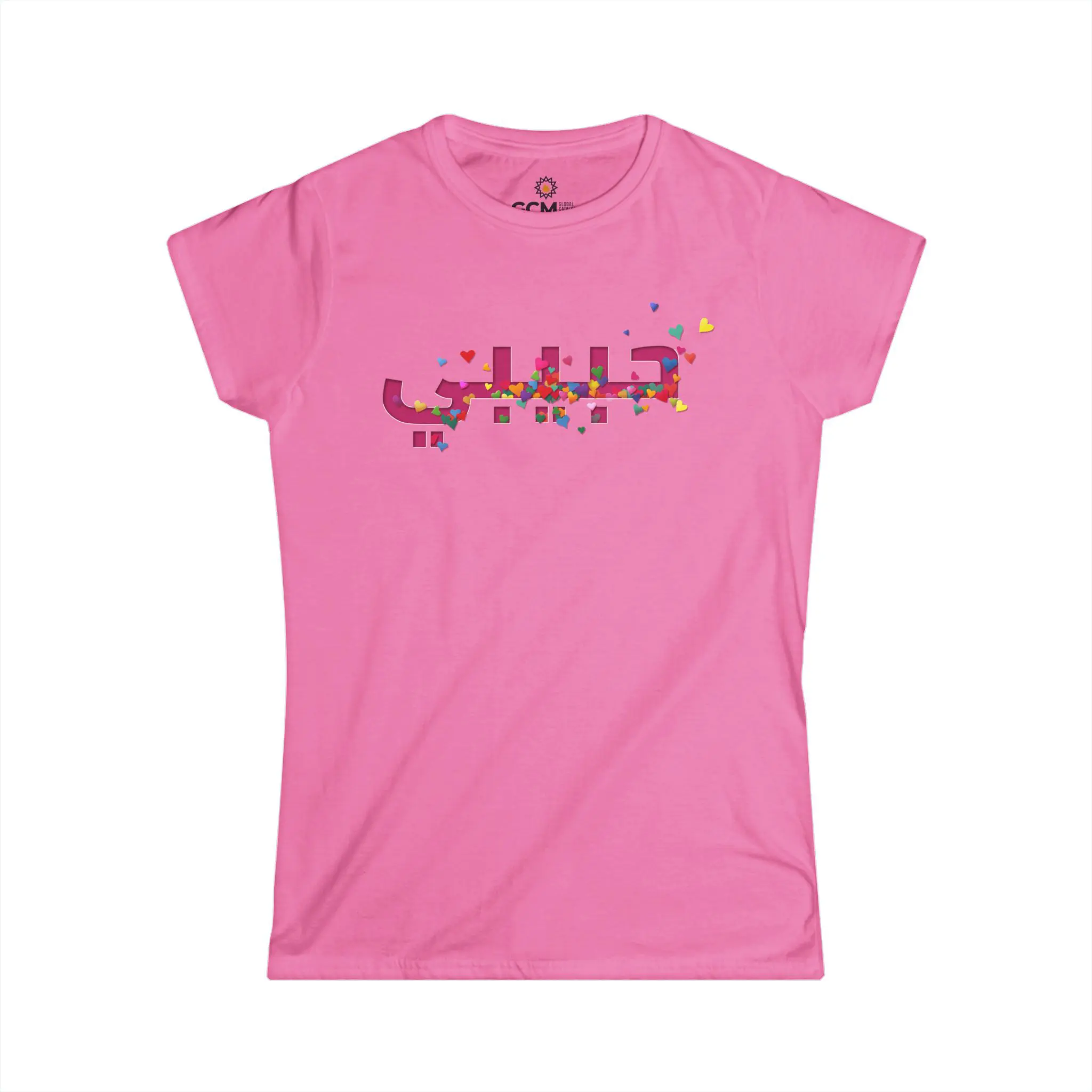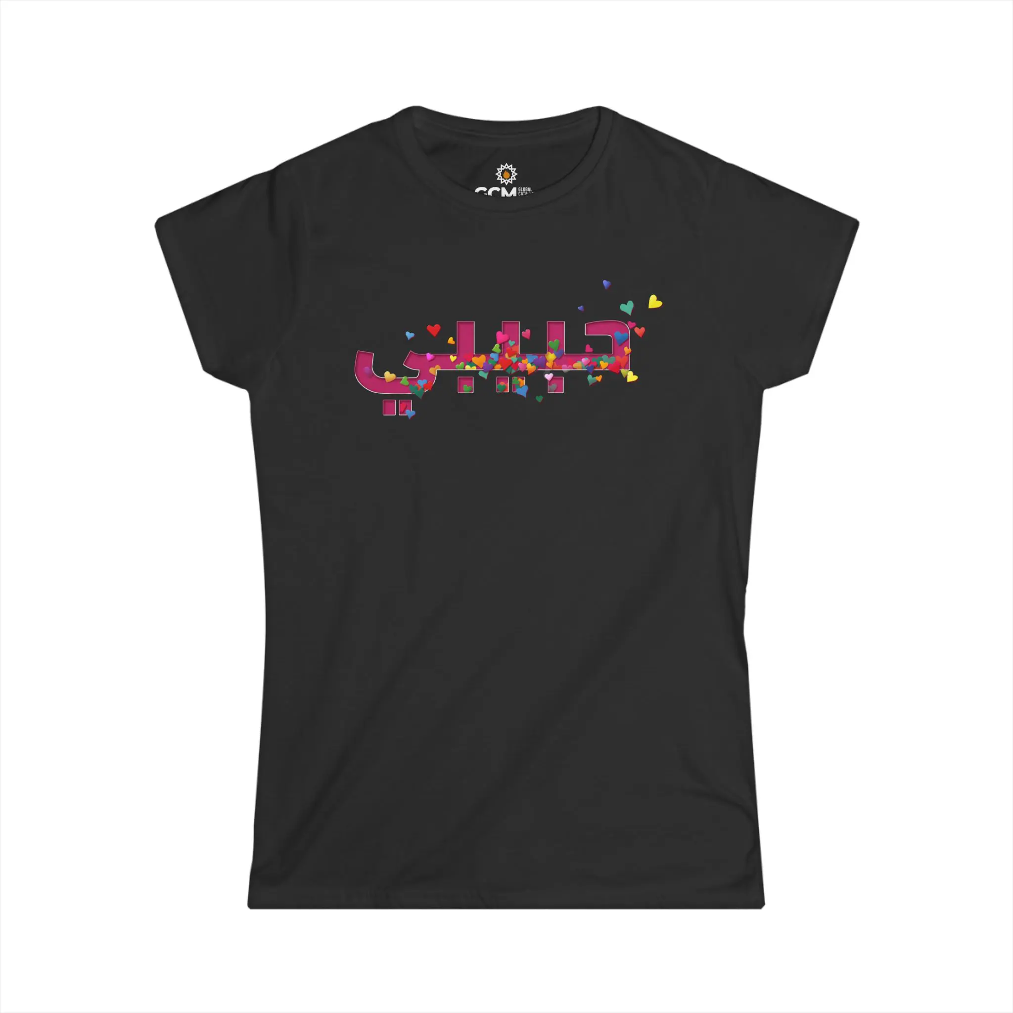 This cozy and stylish woman’s t-shirt features the word “Habibi” (حبيبي) — Arabic for “my friend,” “my beloved,” or “my dear” — set against a playful array of colorful hearts. Designed for both warmth and expression, it blends cultural affection with artistic charm. Whether you’re gifting it or wearing it yourself, it’s a heartfelt way to celebrate love, friendship, and connection.