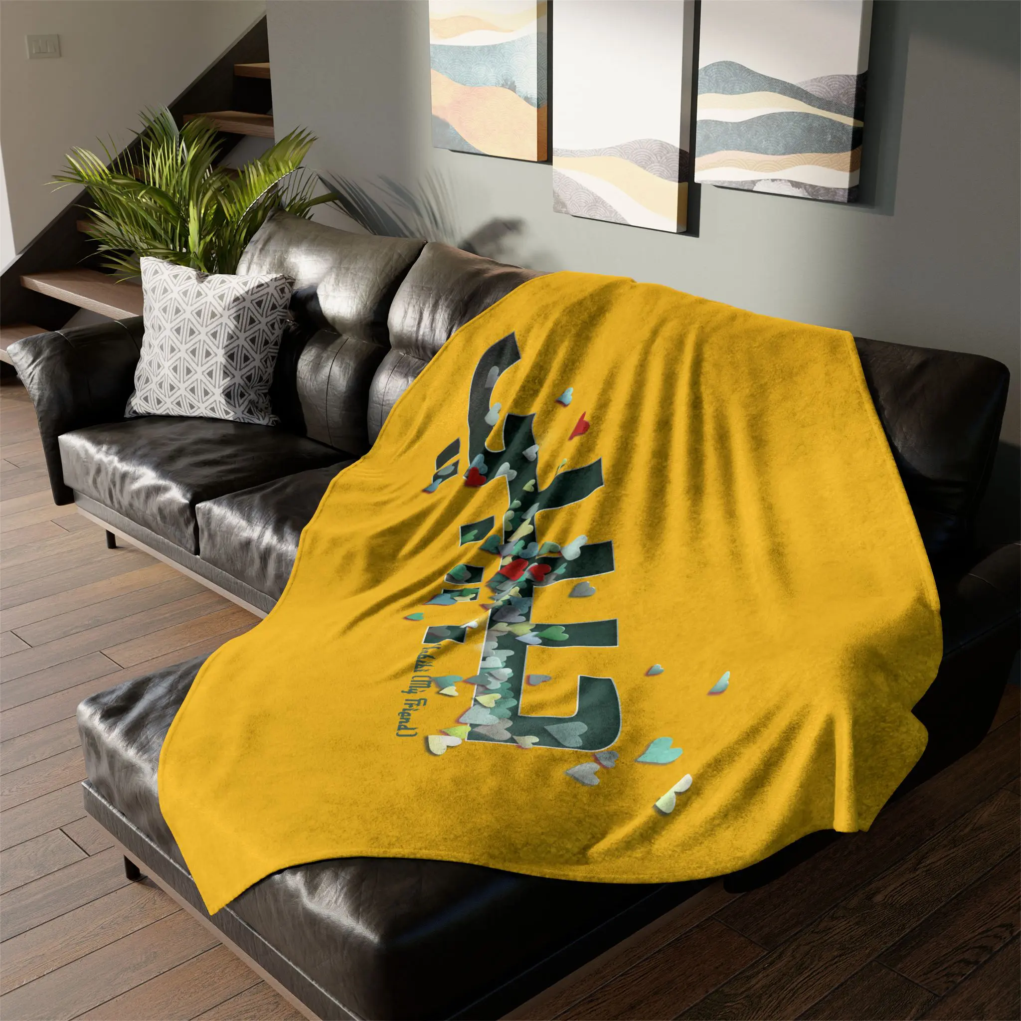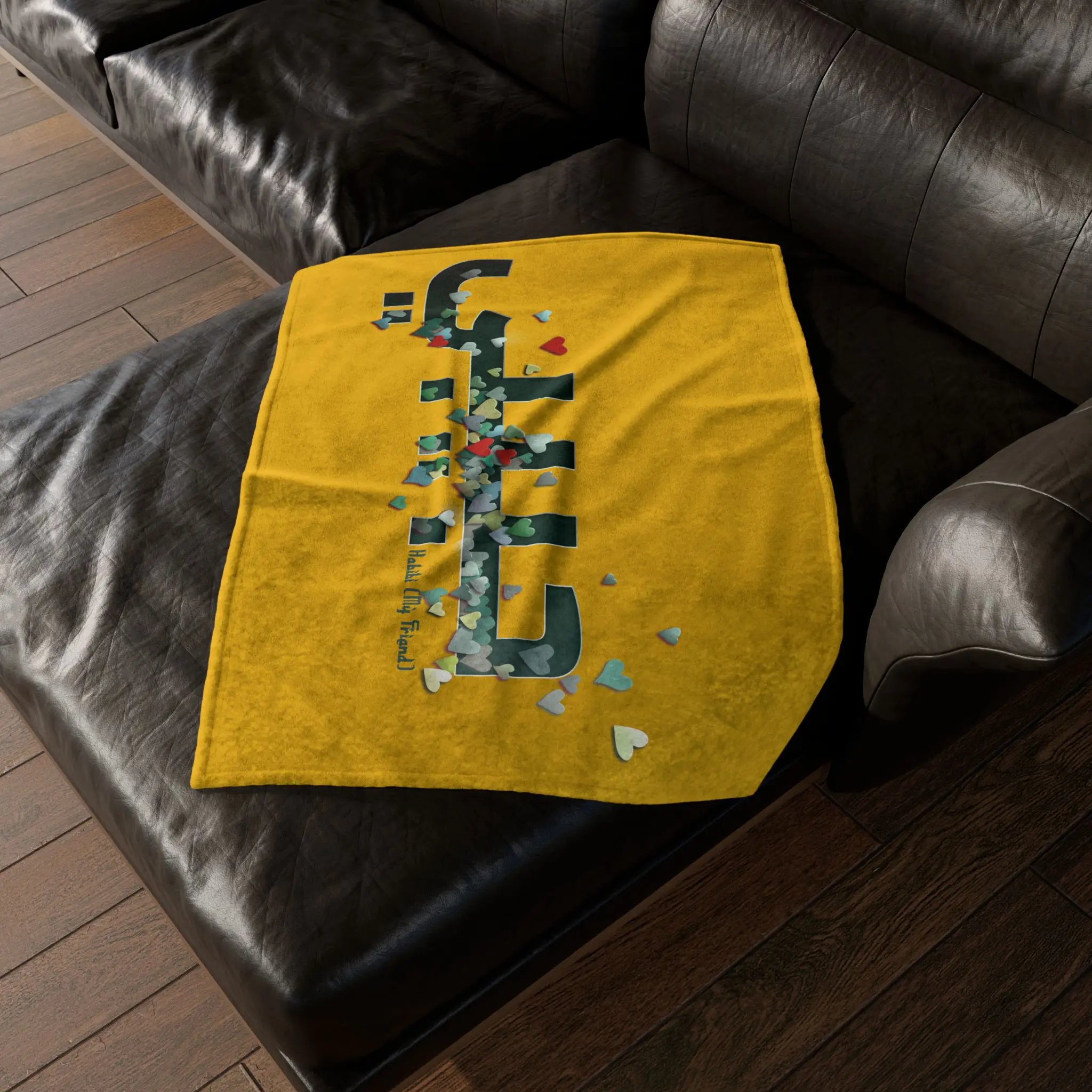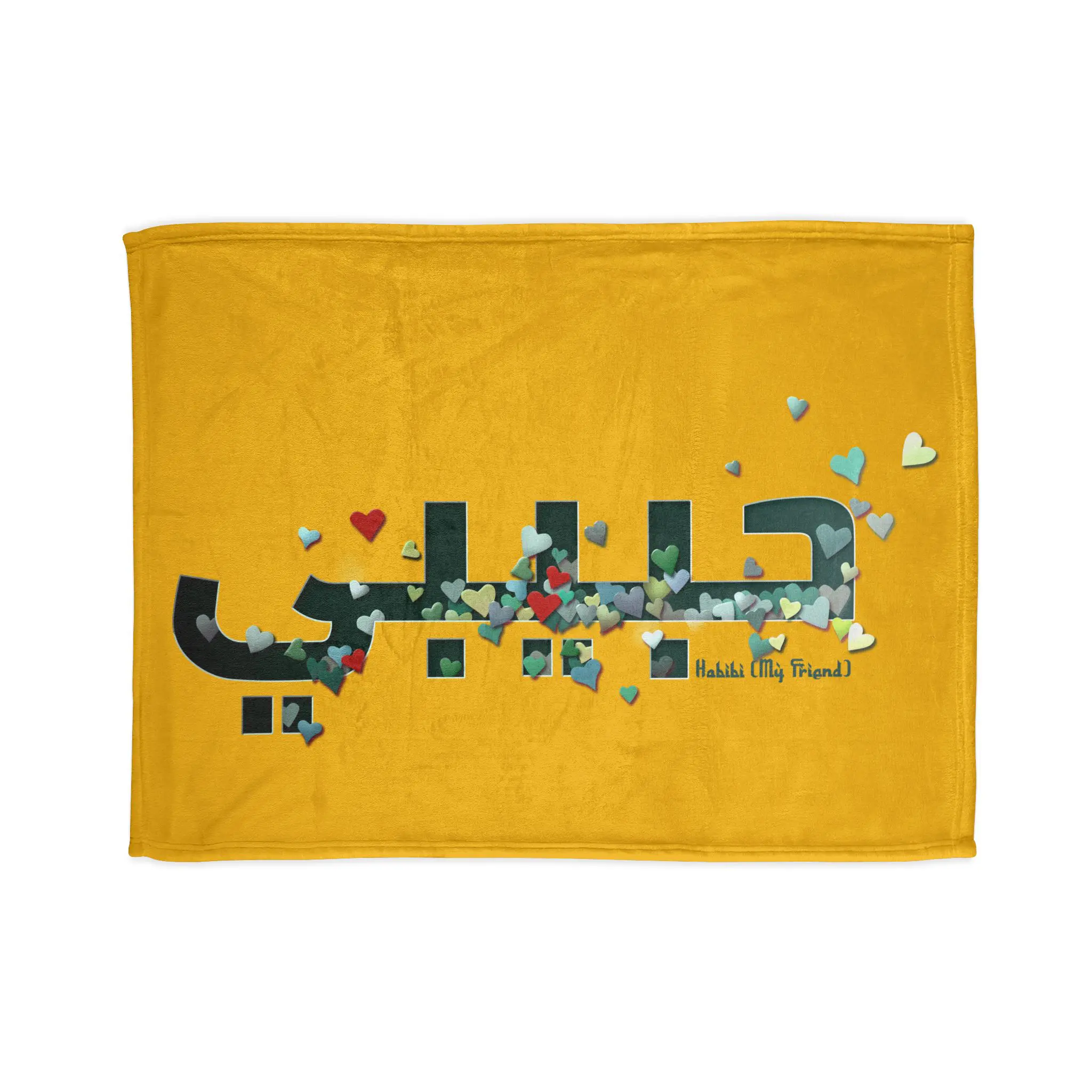 Cozy up in comfort and affection with this soft polyester blanket featuring a graceful green letter design and the Arabic word ‘Habibi’—meaning “my beloved,” “my friend,” or “my dear.” The soothing green inlay adds a calming, earthy tone to this expressive piece, making it perfect for gifting, relaxing, or adding a touch of meaningful beauty to your space. A warm reminder of love that transcends language.