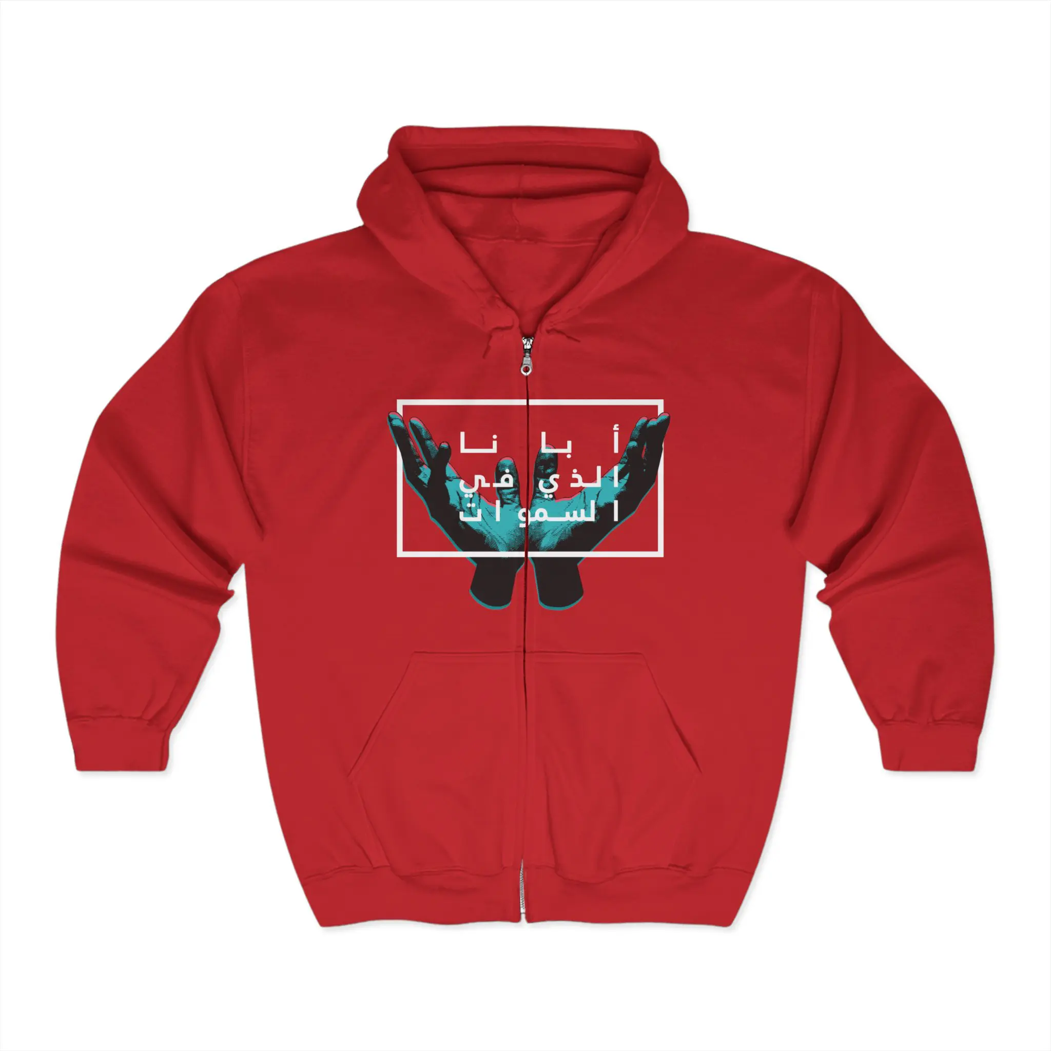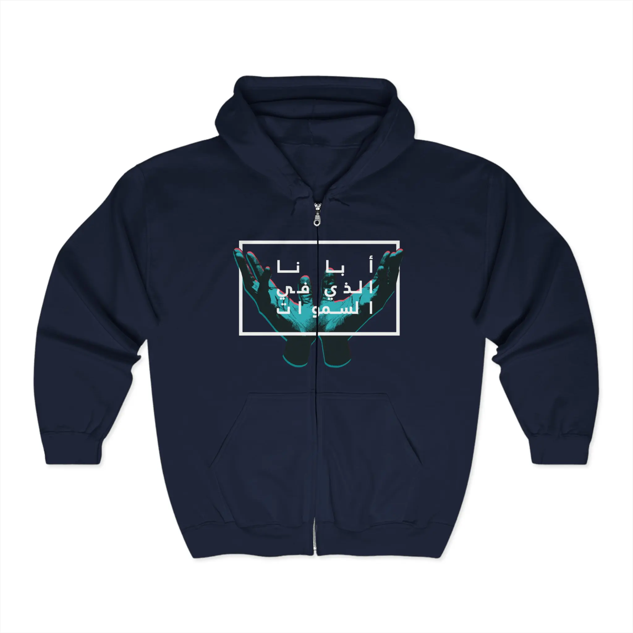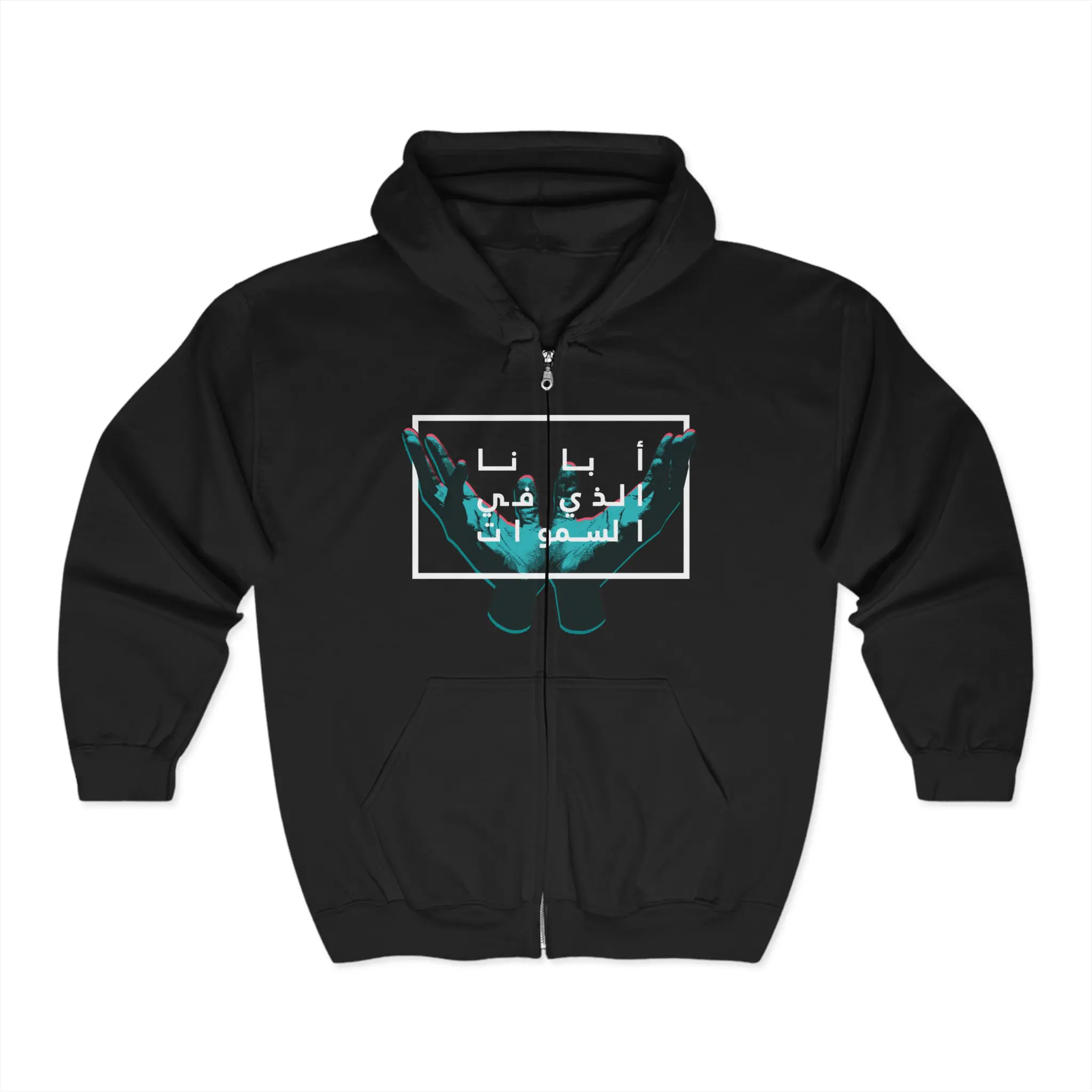 This faith-inspired zip hoodie features the powerful words “Our Father in Heaven” written in elegant Arabic calligraphy. Crafted for both comfort and significance, it offers a meaningful way to carry your faith into daily life. The clean design, warm fabric, and thoughtful message make it a versatile piece for layering or gifting.