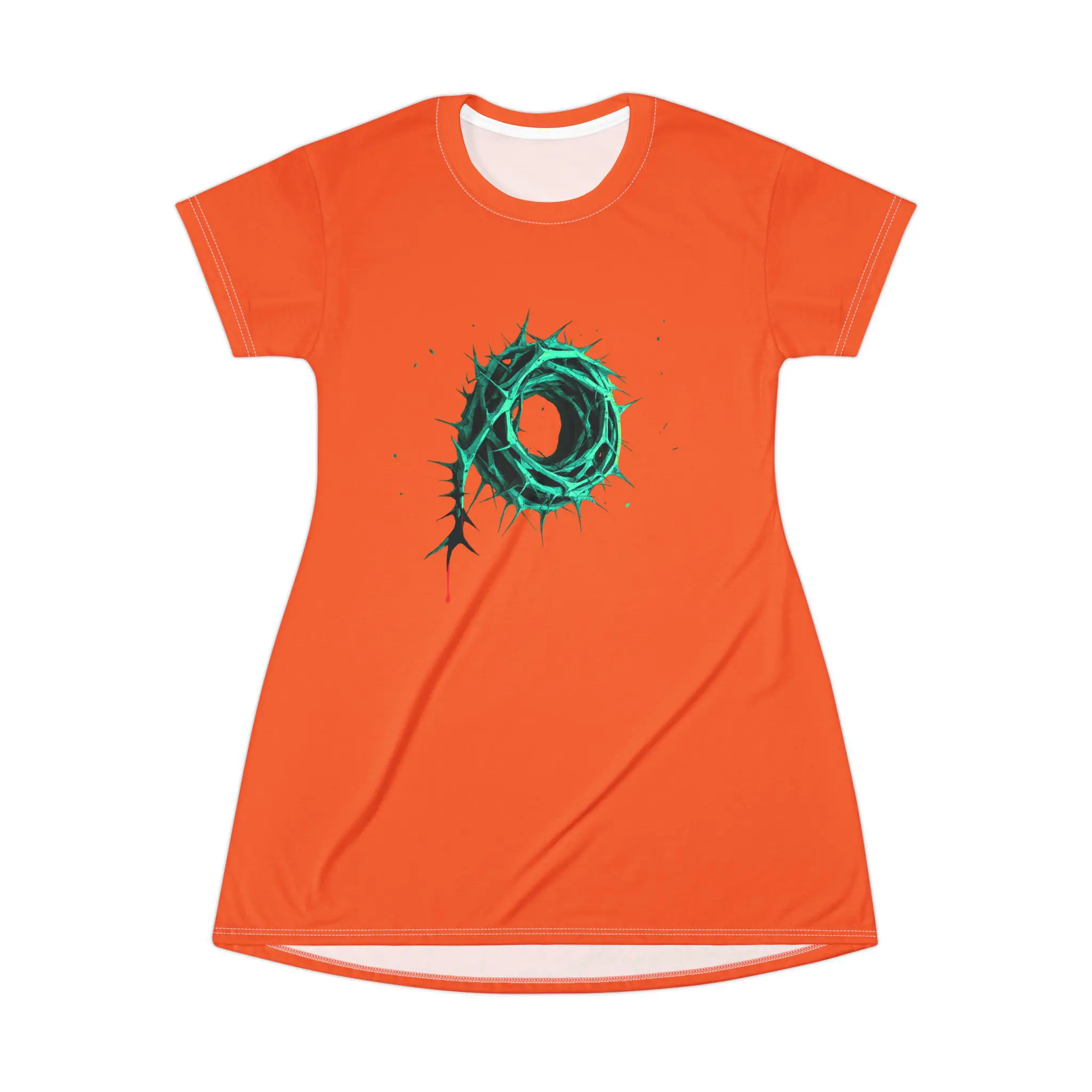 This vibrant orange T-shirt dress features a bold green Crown of Thorns design, symbolizing Christ’s sacrifice and the enduring hope of redemption. Crafted for comfort and style, its relaxed fit makes it perfect for casual outings, church events, or making a faith-filled statement.