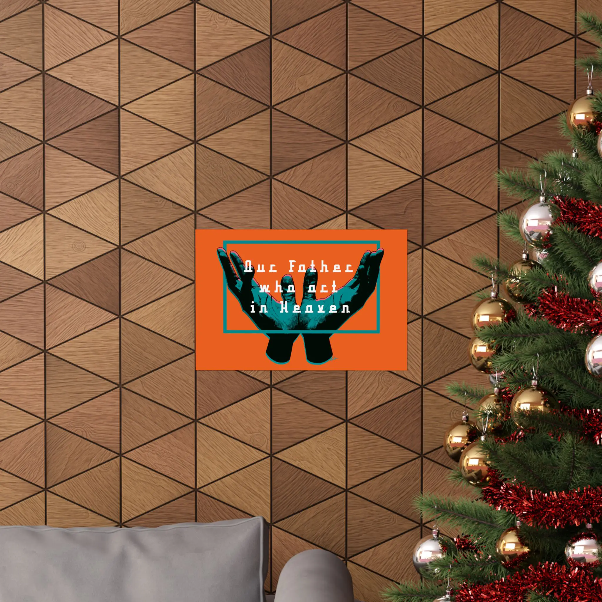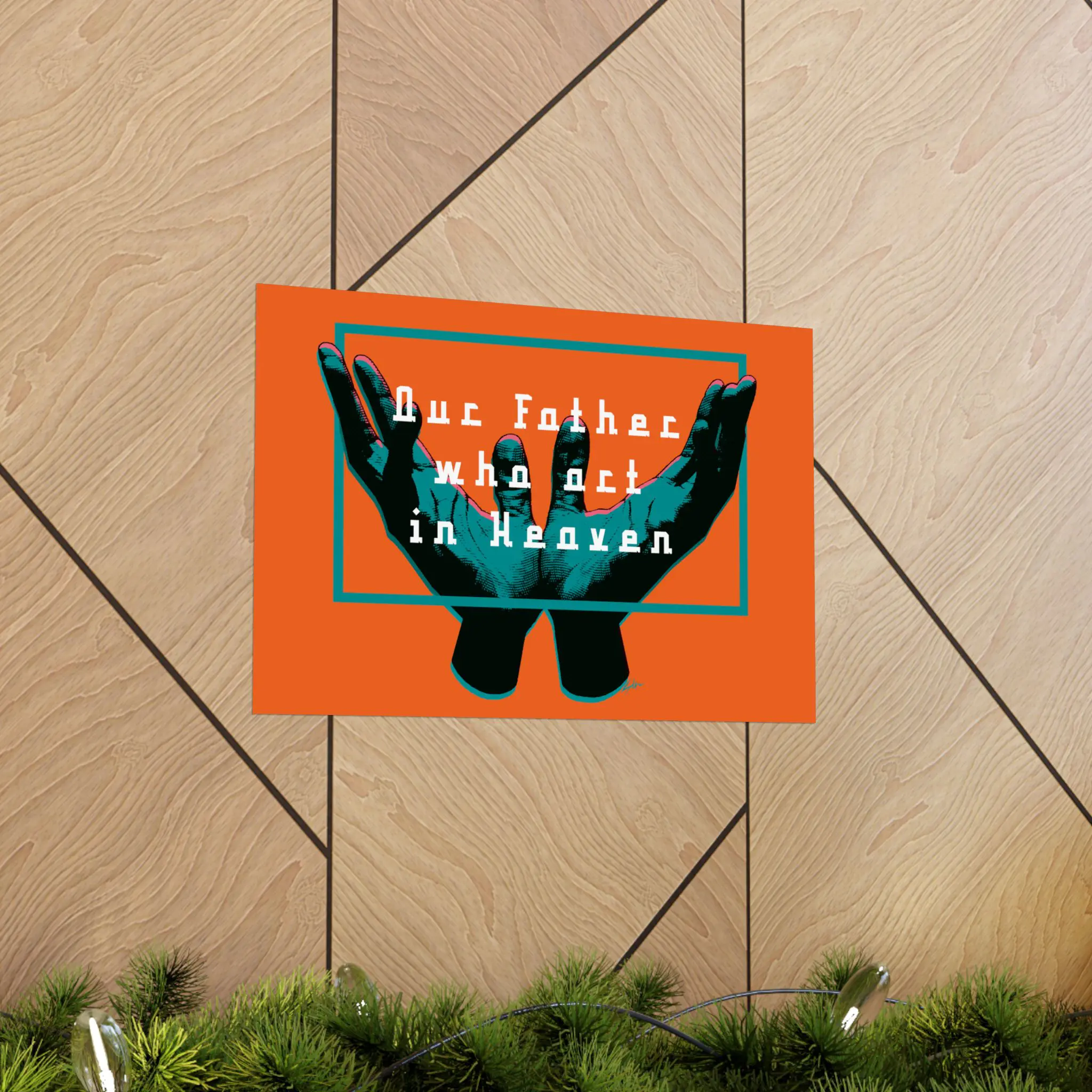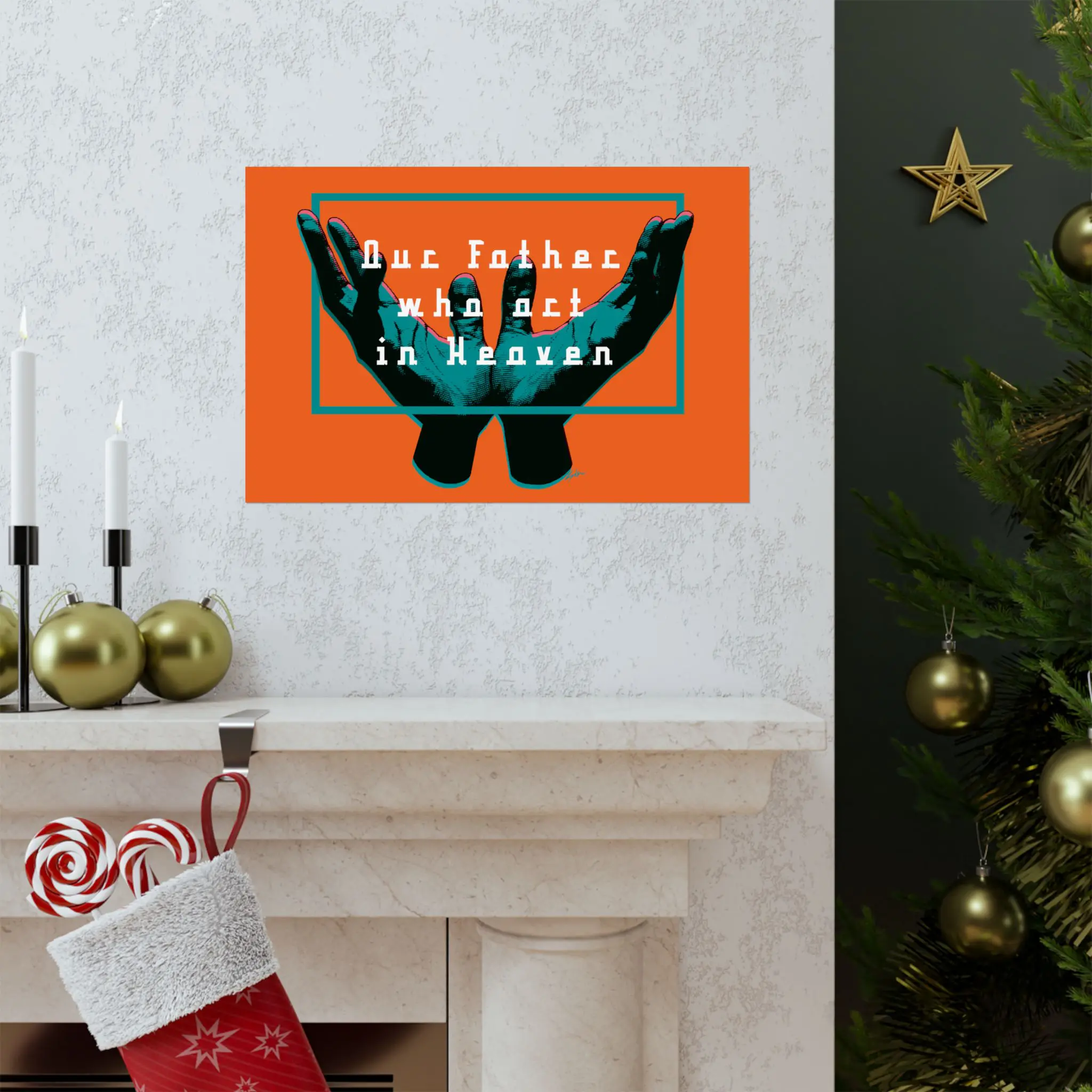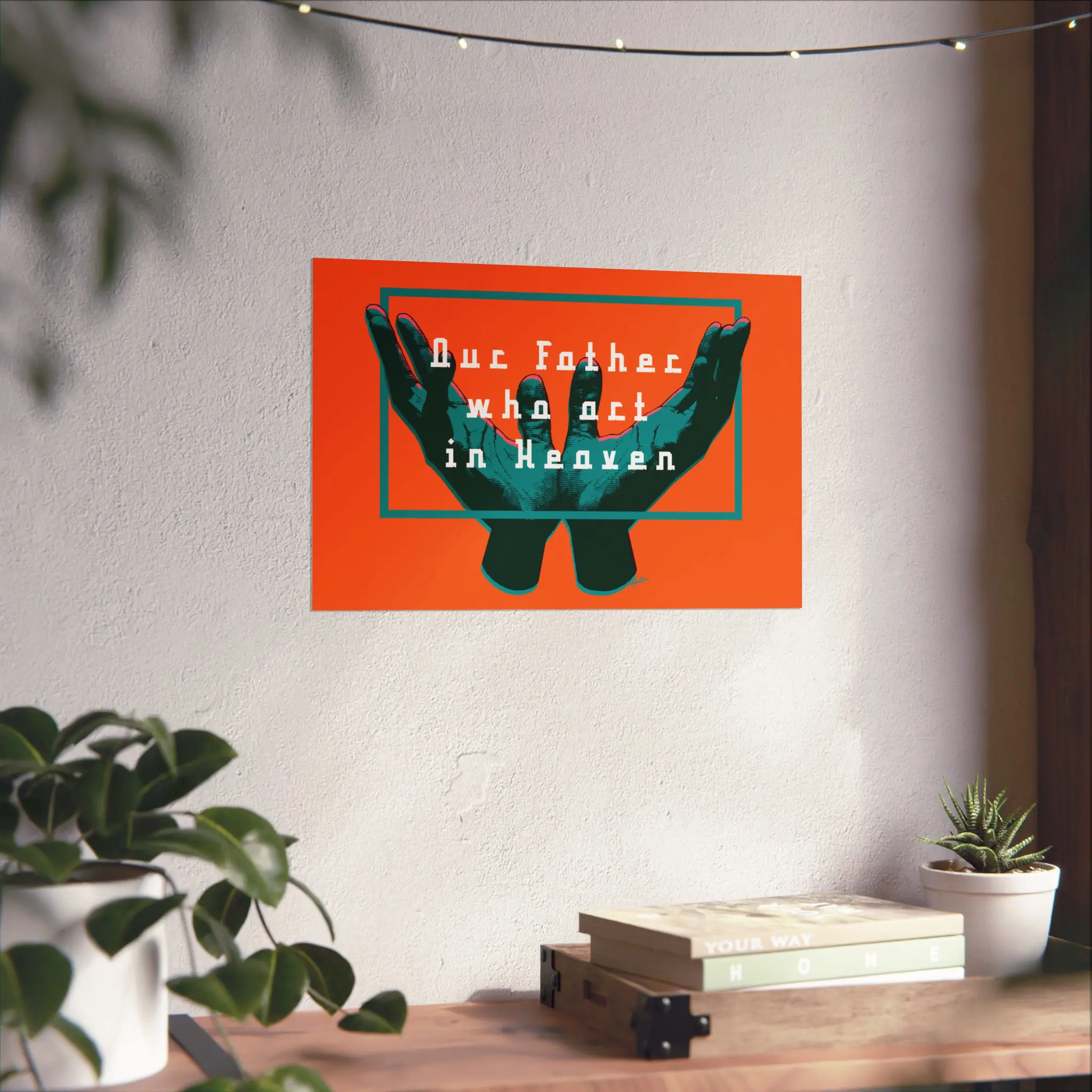 Radiating warmth and spiritual energy, this poster displays the phrase “Our Father in Heaven” in English, set within a unified orange interior and background. The layered orange tones symbolize light, hope, and devotion—making this piece both vibrant and reverent. Inspired by Matthew 6:9, it’s a meaningful addition to any prayer space, home, or gift collection that celebrates faith with color and purpose.
