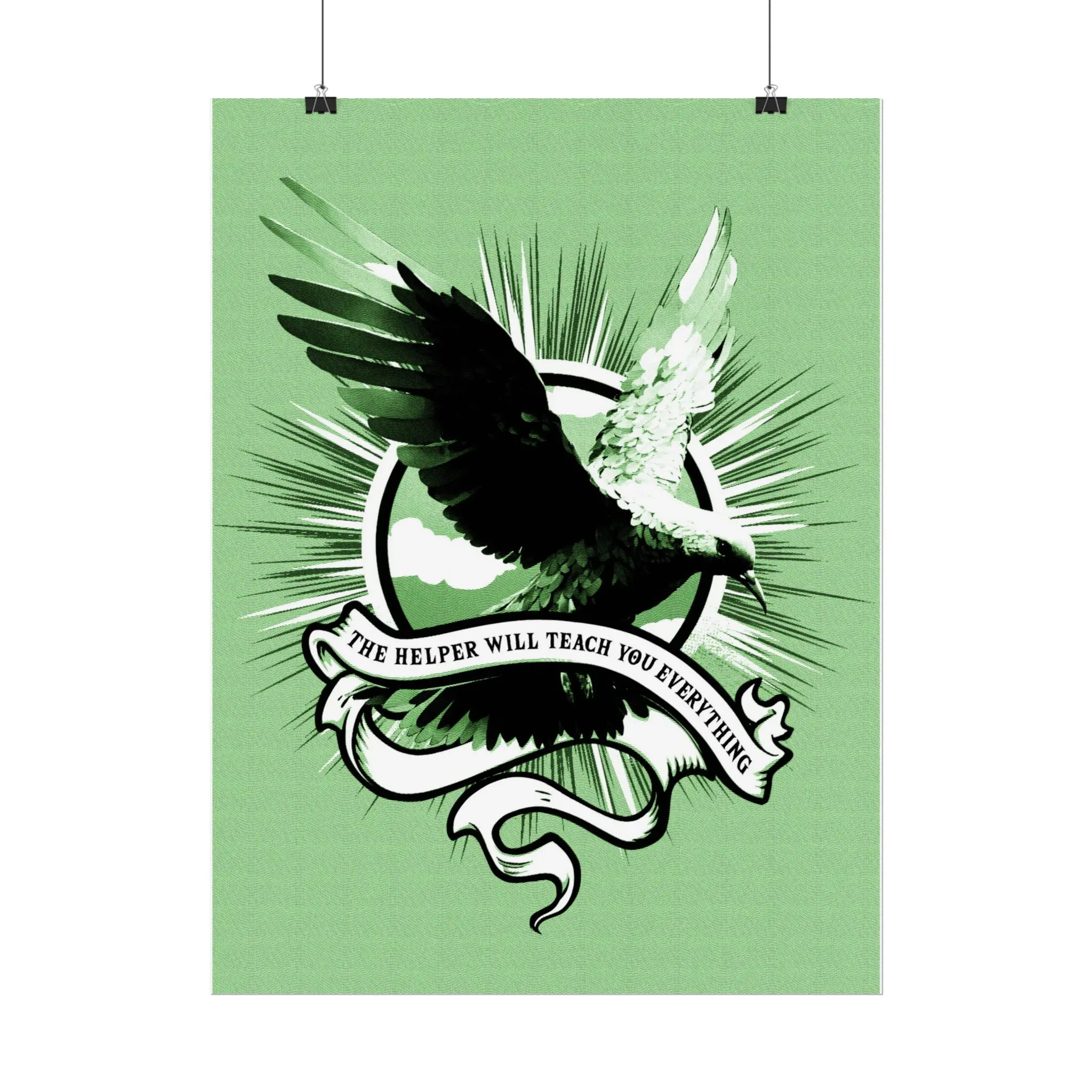 This elegant poster features a graceful line-etch illustration of a dove, symbolizing the Holy Spirit, set against a calming green background. Highlighting the promise of John 14:26—“The Holy Spirit will teach you all things and remind you of everything I have told you”—it’s a meaningful reminder of divine guidance and peace.