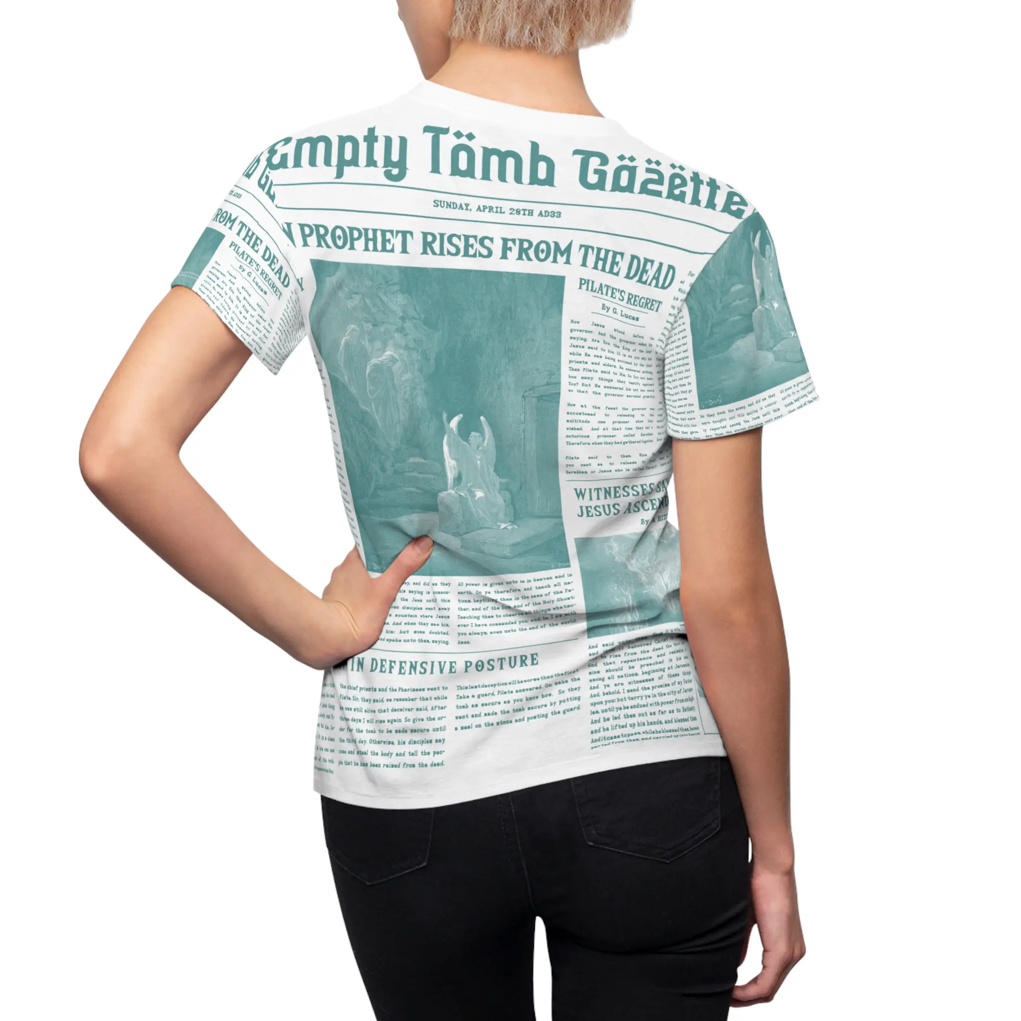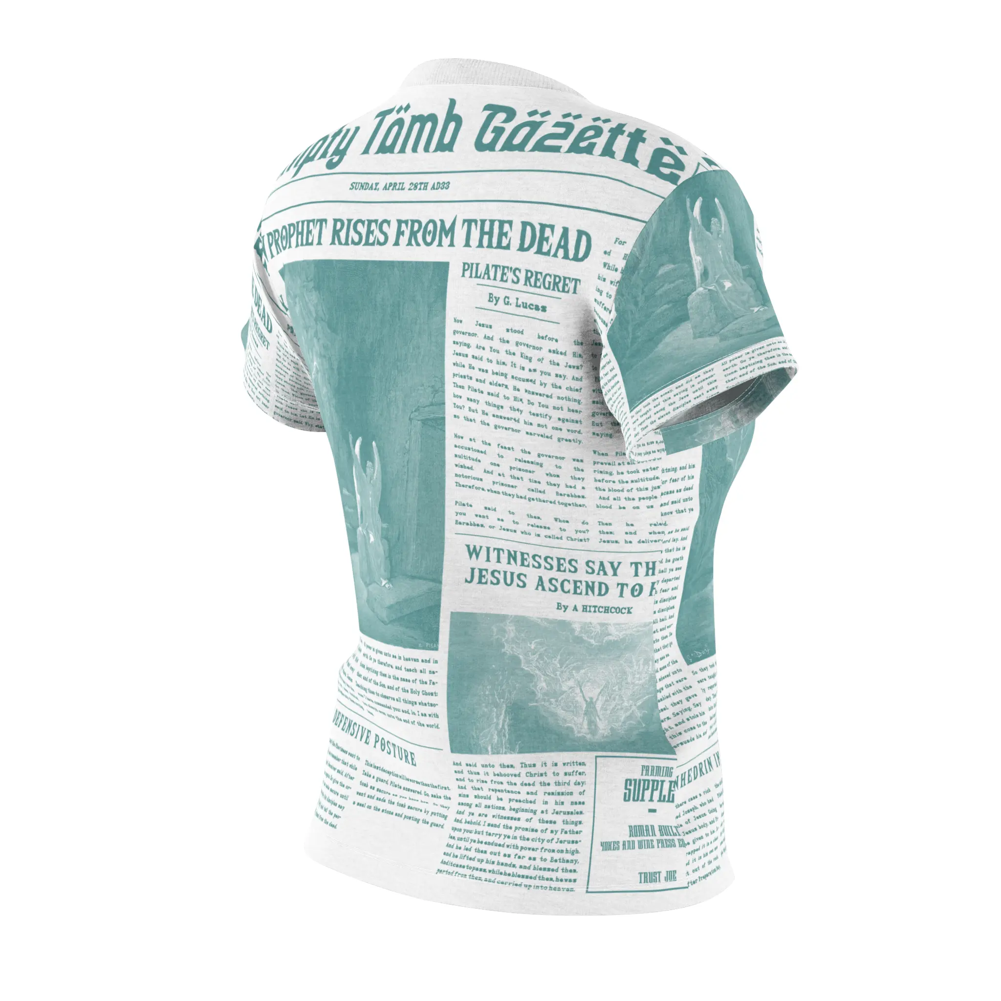 This women’s white T-shirt features the “Empty Tomb” design in refreshing green font, declaring the life-changing message: “The Tomb Is Empty – He Is Risen!” Crafted from soft, breathable fabric, it offers both comfort and style for everyday wear.